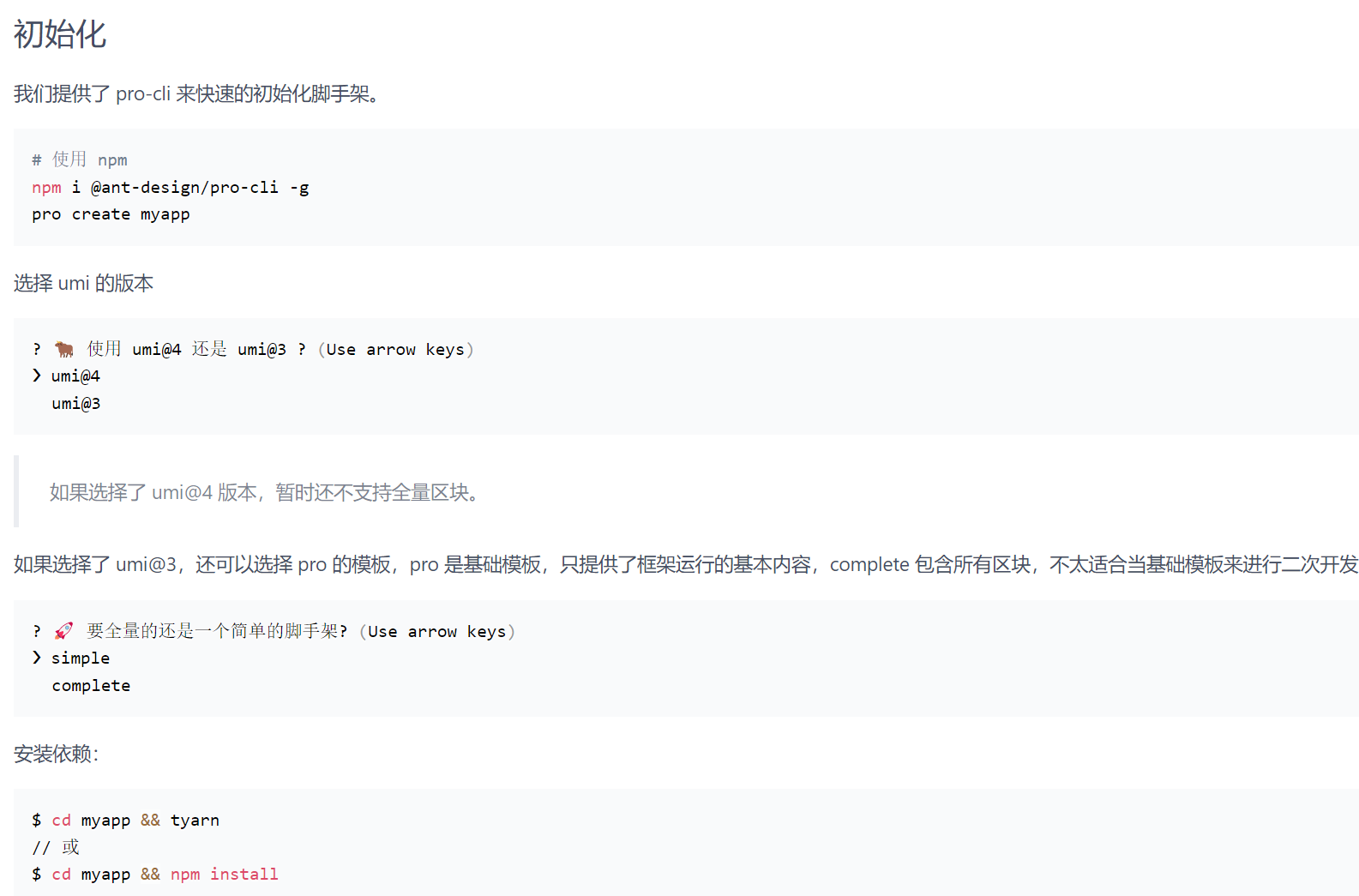1 2 3 4 pro create myapp #如果安装了 nvm 使用如下命令 npx pro create myapp